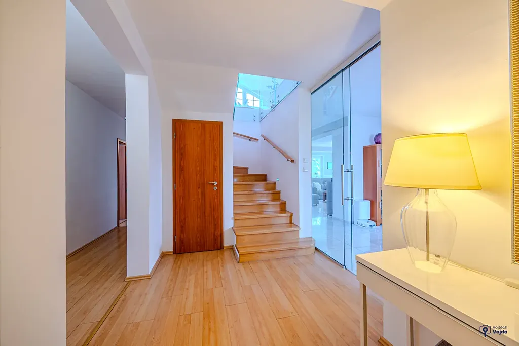 Pro chvíle odpočinku a regenerace je k dispozici soukromá sauna, milovníky vína potěší stylový vinný sklípek. Dům nabízí dostatek prostoru jak pro velkou rodinu, tak i pro kombinaci bydlení a práce z domova.