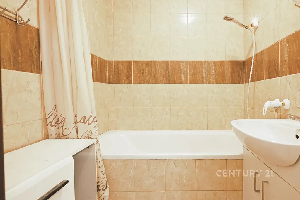 • Koupelna s vanou, umyvadlem a skříňkou pod umyvadlo