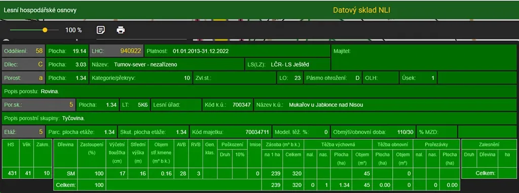 Jedná se o p.č. 375/1 vedená jako lesní pozemek o celkové výměře 13378 m2.
