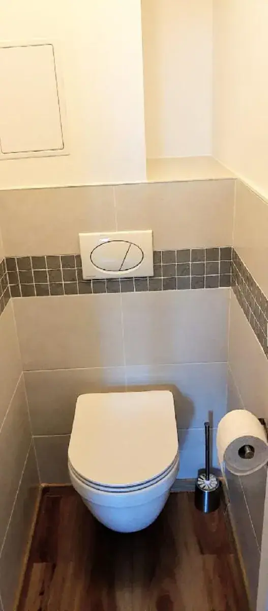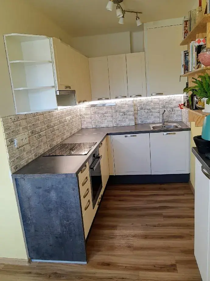 Jednotka by za určitých podmínek a přestavby mohla sloužit i jako byt 3+kk. WC samostatné, koupelna s malou vanou a sprchovou zástěnou. Kuchyňská linka do tvaru " L" se zabudovanými spotřebiči. ( trouba, myčka, indukce, digestoř, lednice)