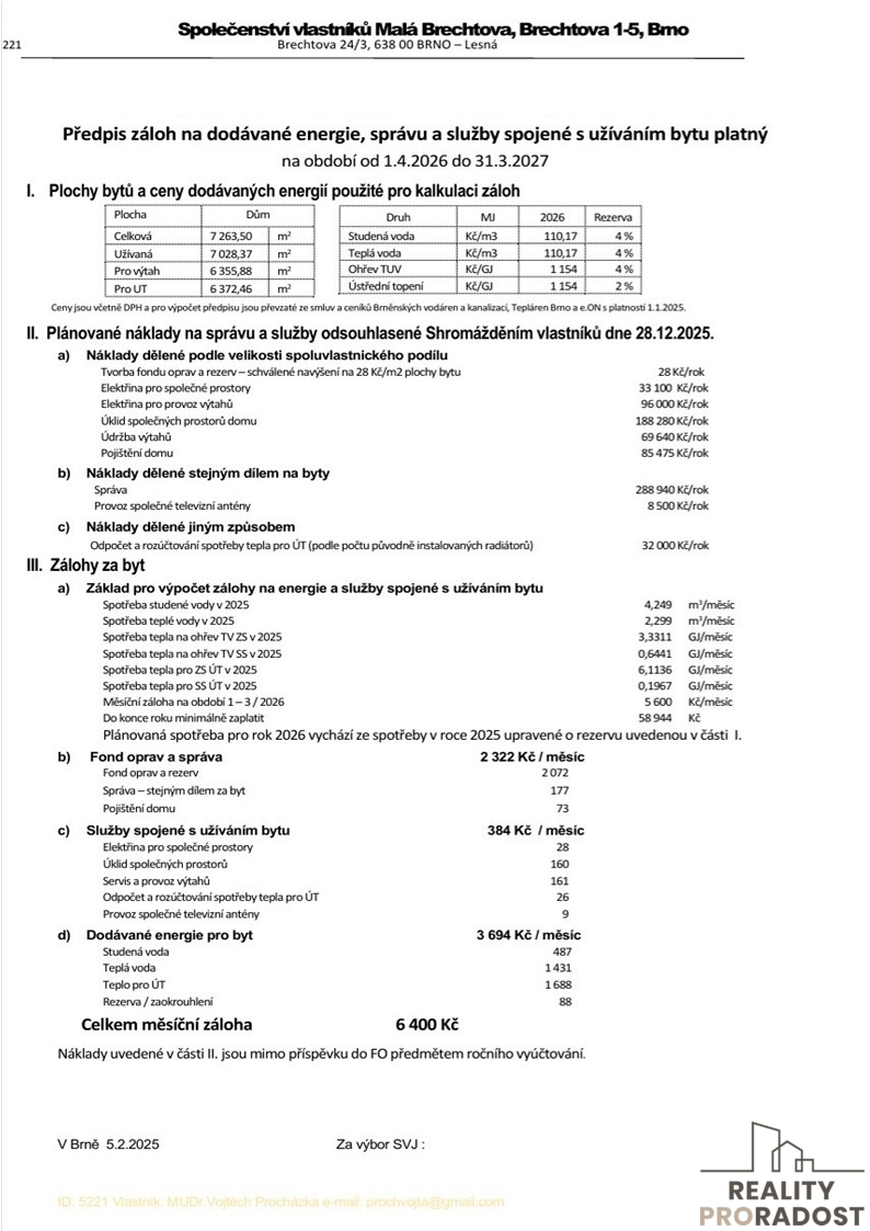 Byt je k nastěhování od 1. 7. 2026, možnost připojení internetu i kabelové televize. Parkování možné na ulici před domem. V domě je možné využít kolárnu a sušárnu.