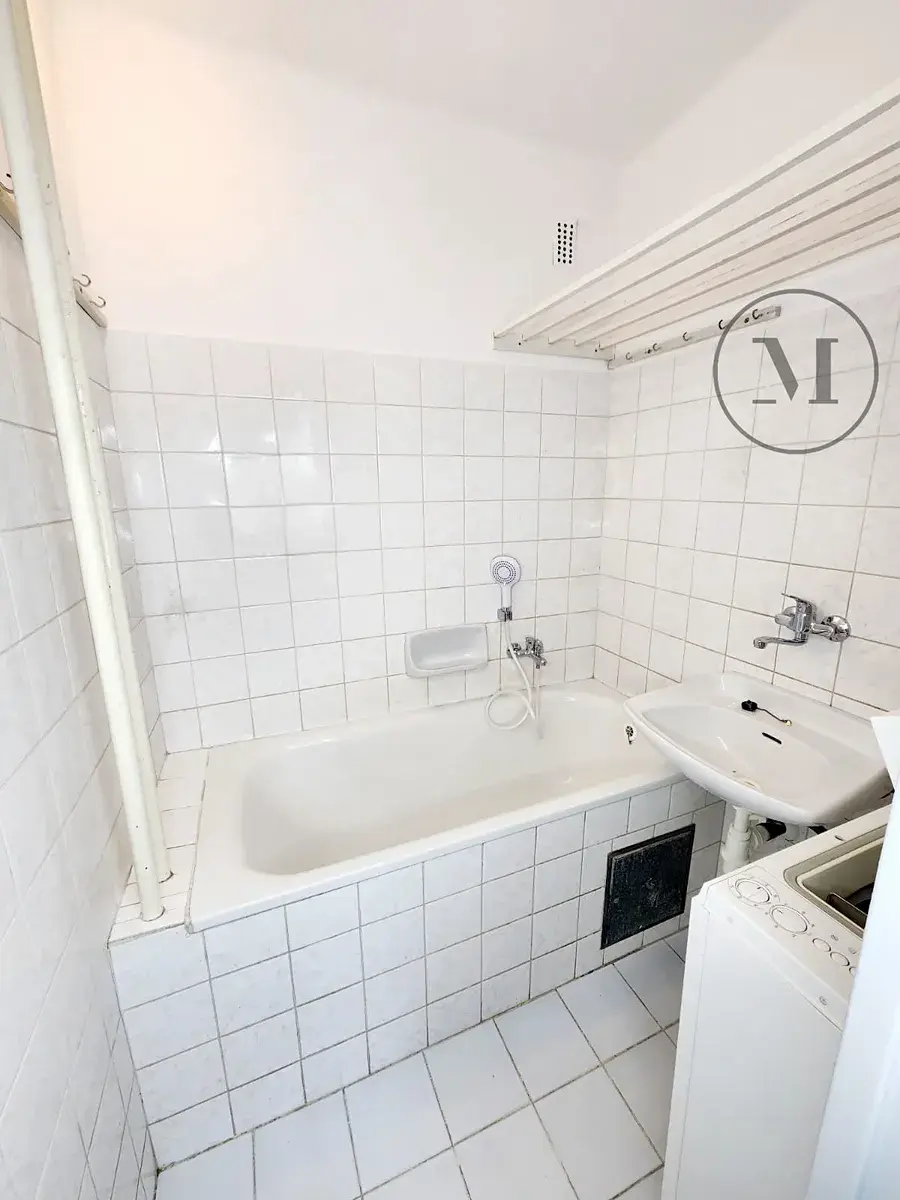V bytě se nachází částečné vybavení (viz fotografie), které může po dohodě zůstat, případně může být odstraněno podle potřeb budoucího nájemníka. Dále k bytu náleží sklepní kóje (2 m²). Možnost využívat sušárnu, kolárnu.