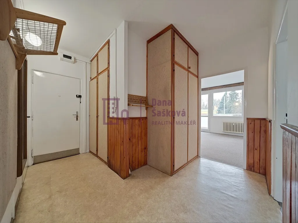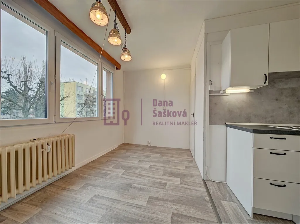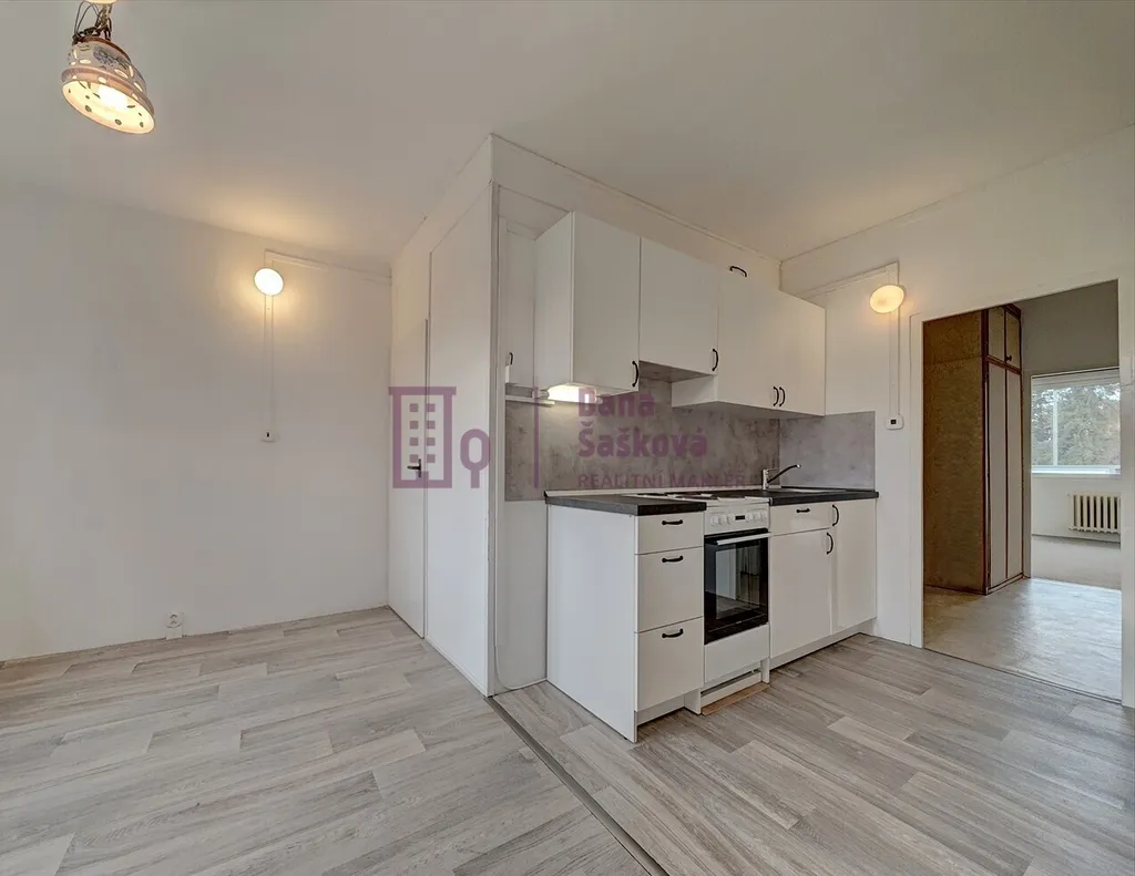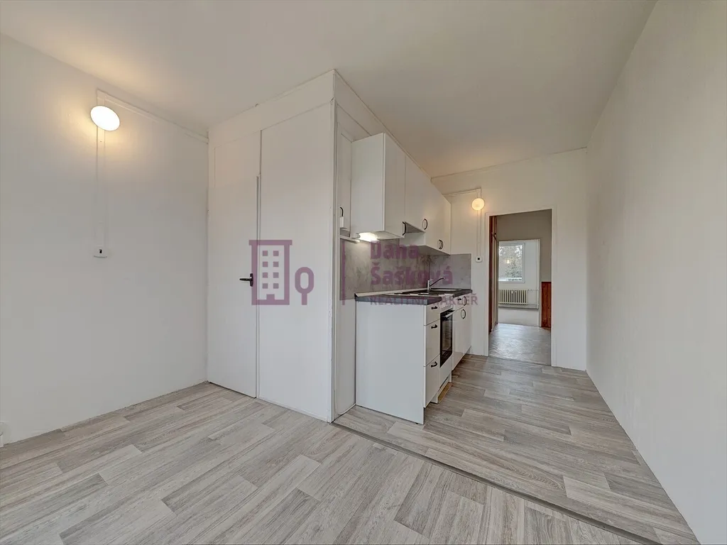 Byt je vybavený kuchyňskou linkou s elektrickým sporákem a vestavěnými skříněmi v chodbě.