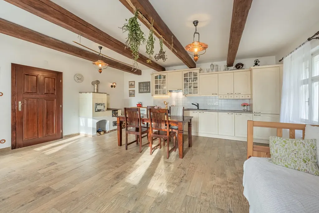 Dům nabízí přízemí a obytné podkroví. Objekt prošel rozsáhlou rekonstrukcí v letech 2016-2021 - nová střecha, nová elektřina, rozvody vody, ohřev bojlerem a vytápění elektrokotlem (částečně radiátory a částečně podlahové topení). Nová okna a dveře ve dřevě na míru. Stylové vypínače a zásuvky, odhalené pískovcoví zdivo a spousta další detailů. Příprava na druhou kopelnu a další pokoj na půdě. Sklep na víno.