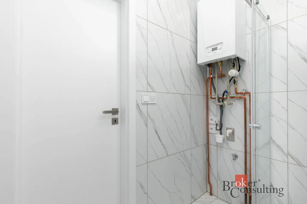 V kuchyni je moderní kuchyňská linka s vestavěnými spotřebiči – el. varná deska, trouba, myčka, mikrovlnná trouba a digestoř. Byt má také nová okna a předokenní žaluzie, které zajišťují dostatek soukromí i příjemné klima v interiéru. Teplo a ohřev vody, zajišťuje nový kotel. (náklady pod kontrolou)