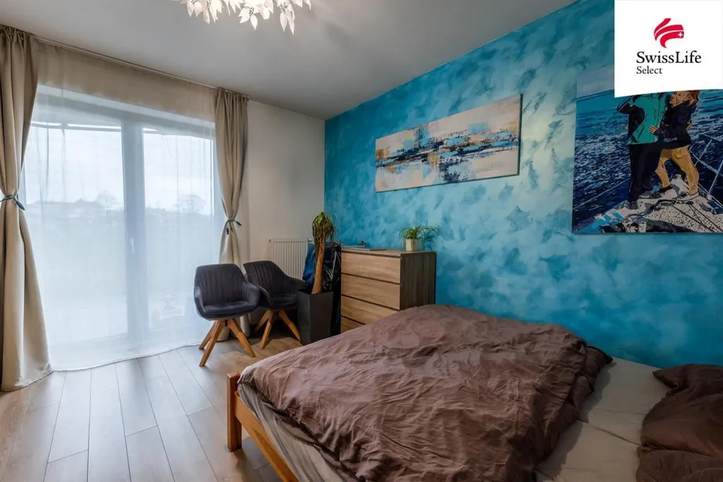 Terasa není jen doplněk, ale plnohodnotná součást bydlení. Nabízí prostor pro posezení, grilování i klidné večery s výhledem do zeleně podél řeky. V praxi tak byt nepůsobí jako klasické 2+kk, ale jako prostor s výrazně větším využitím.