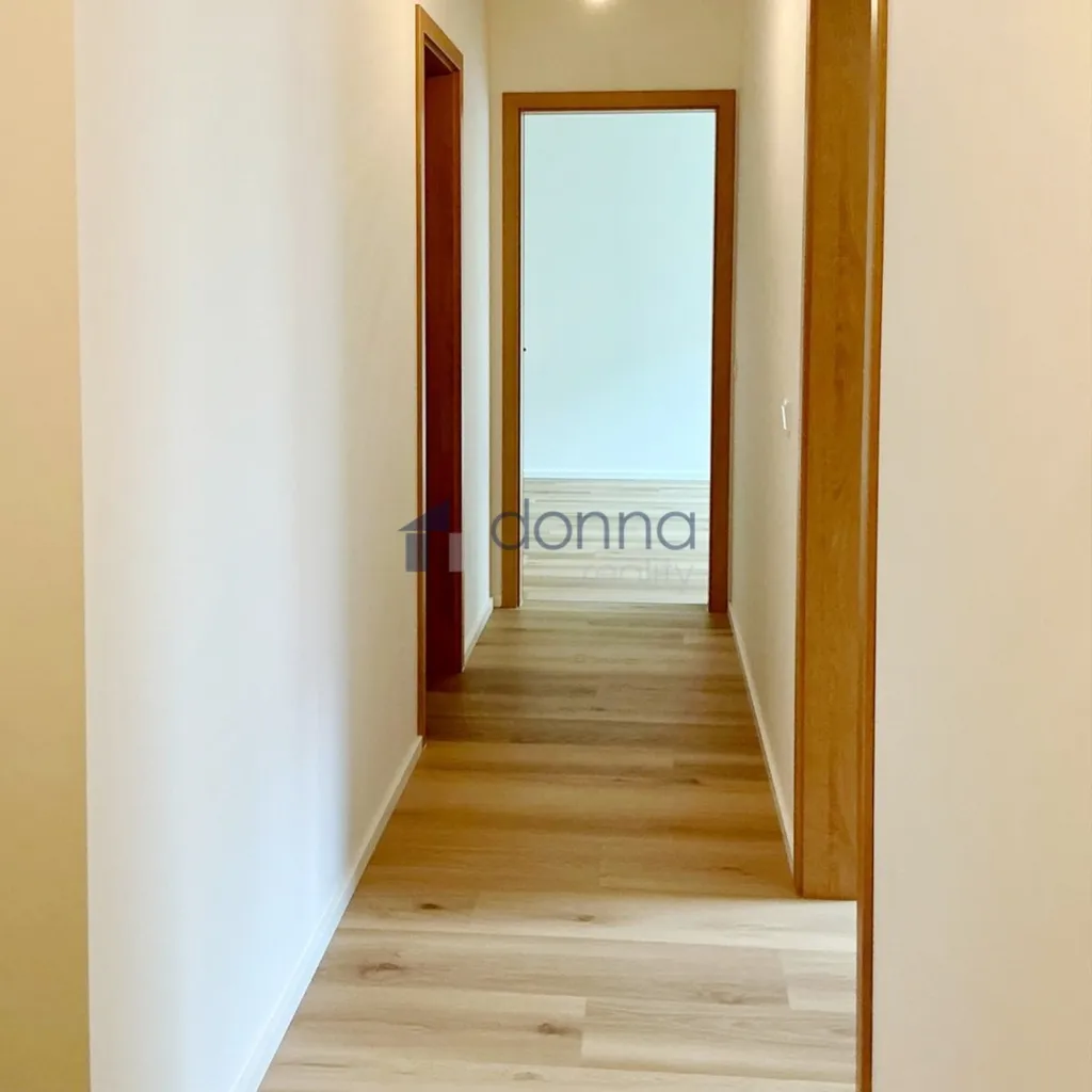 Vinylové podlahy v pokojích, dlažba v předsíni a koupelně. Okna a balkón situované do zeleného dvora.