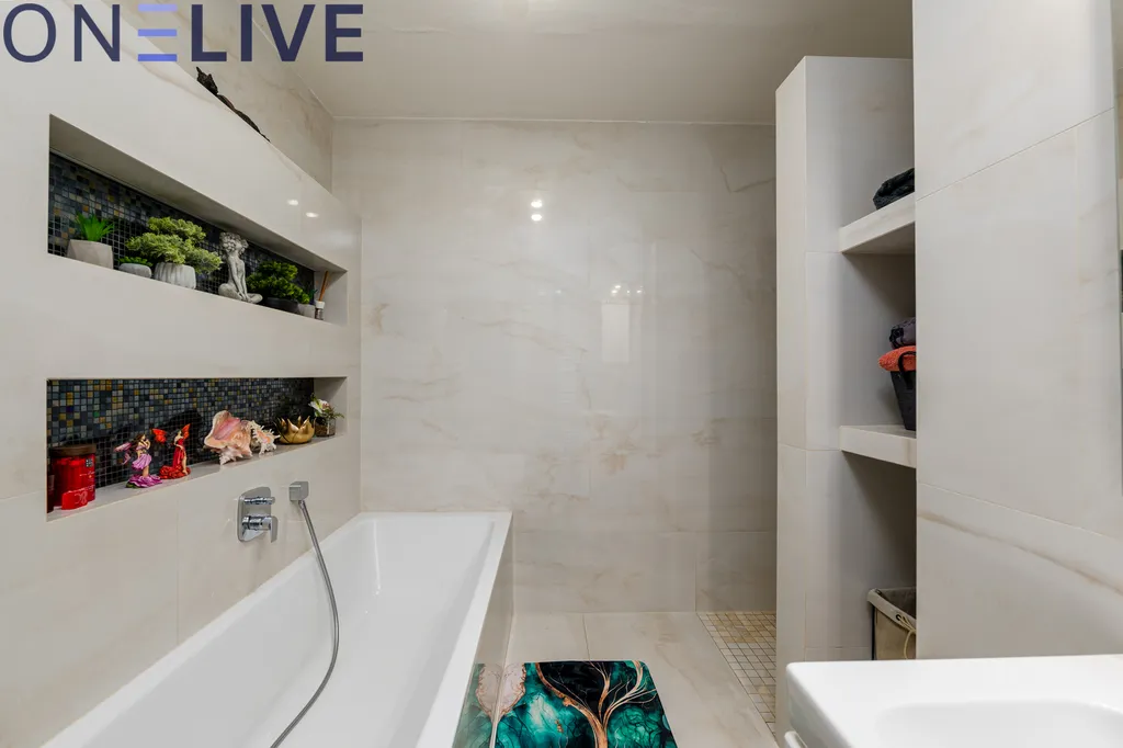 Benefitem tohoto bytu je kombinace elektrického podlahového vytápění a krbových kamen, která umožňuje efektivní regulaci nákladů na bydlení. Při běžném užívání doporučujeme zálohu na elektřinu maximálně 3.000 Kč měsíčně.