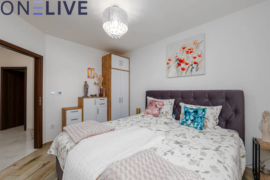 Byt o velikosti 4+kk se nachází v přízemí novostavby a nabízí komfortní bydlení s přímým vstupem na soukromou zahradu o výměře 156 m². Součástí pronájmu je jedno parkovací stání.