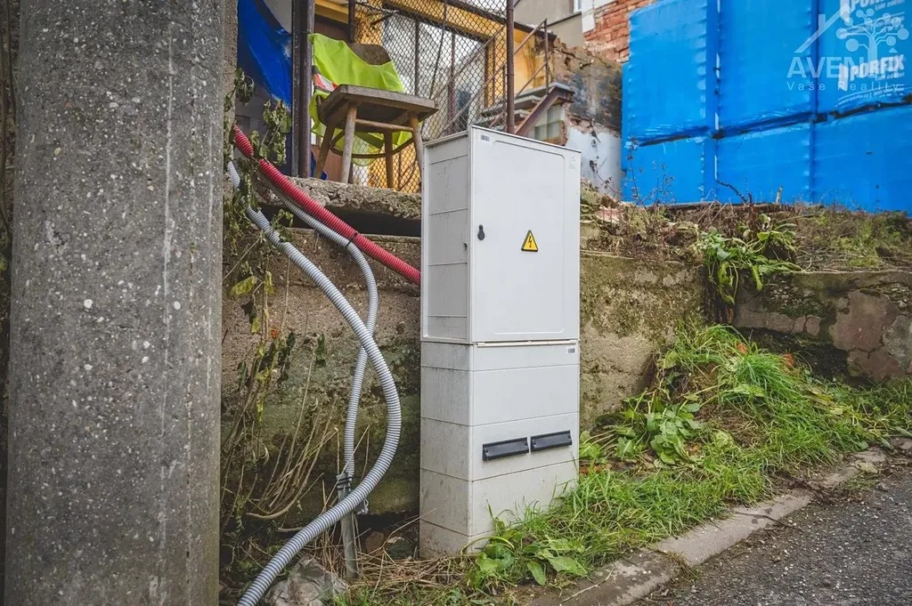 V plánu je dům napojit na vodu a kanalizaci v ulici, nová elektrická skříň je již nachystaná na pozemku domu.