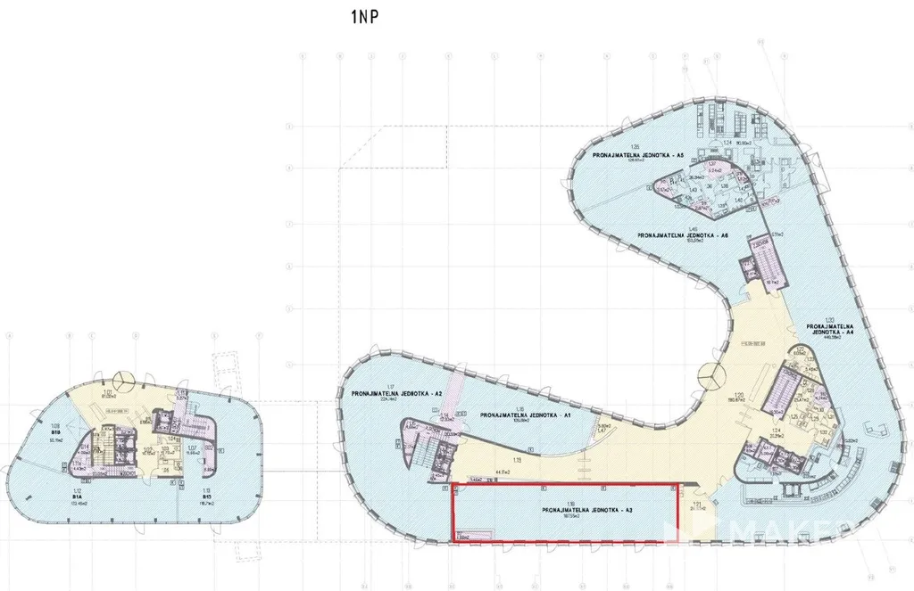 Měsíční nájemné: 18,90 eur za m2 + poplatky 160,-Kč za m2.