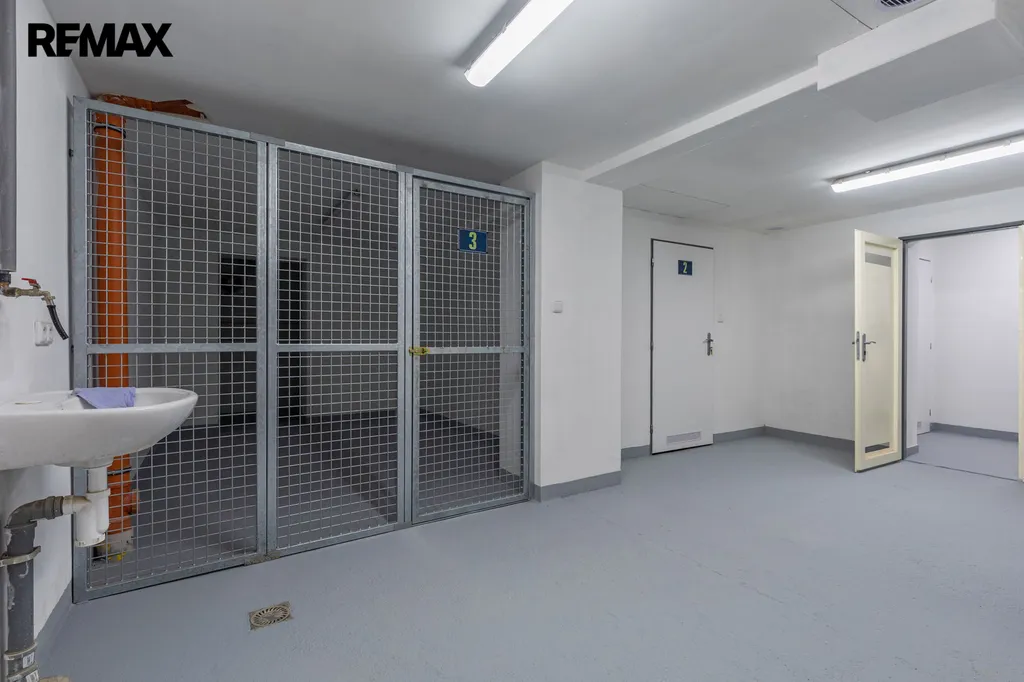 Samostatné WC se závěsnou mísou a umývátkem pro osobní hygienu, odsávání. K bytu náleží sklepní kóje, umístěna v krajním vchodě.