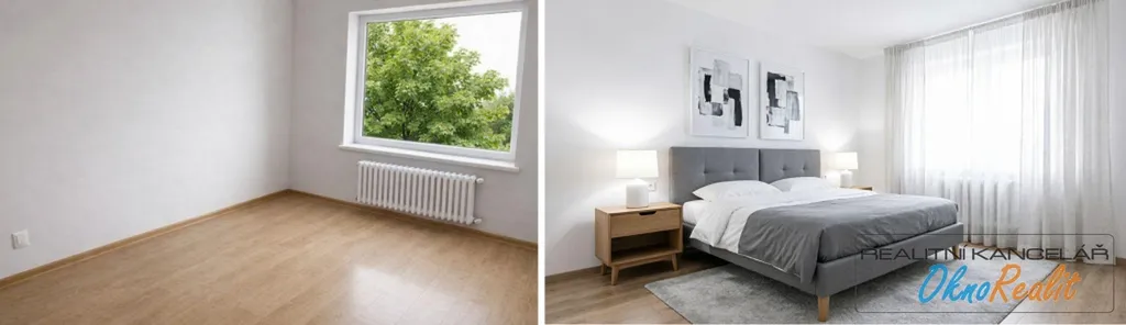 Ložnice s výhledem na terasu a do zahrady: Dvě ložnice orientované na východ (10 m and sup2; a 11,45 m and sup2;) zajišťují klidný spánek. Hlavní ložnice disponuje přímým výhledem, na exklusivní dlážděnou terasu o rozloze 64 m and sup2;, která patří výhradně k tomuto bytu.