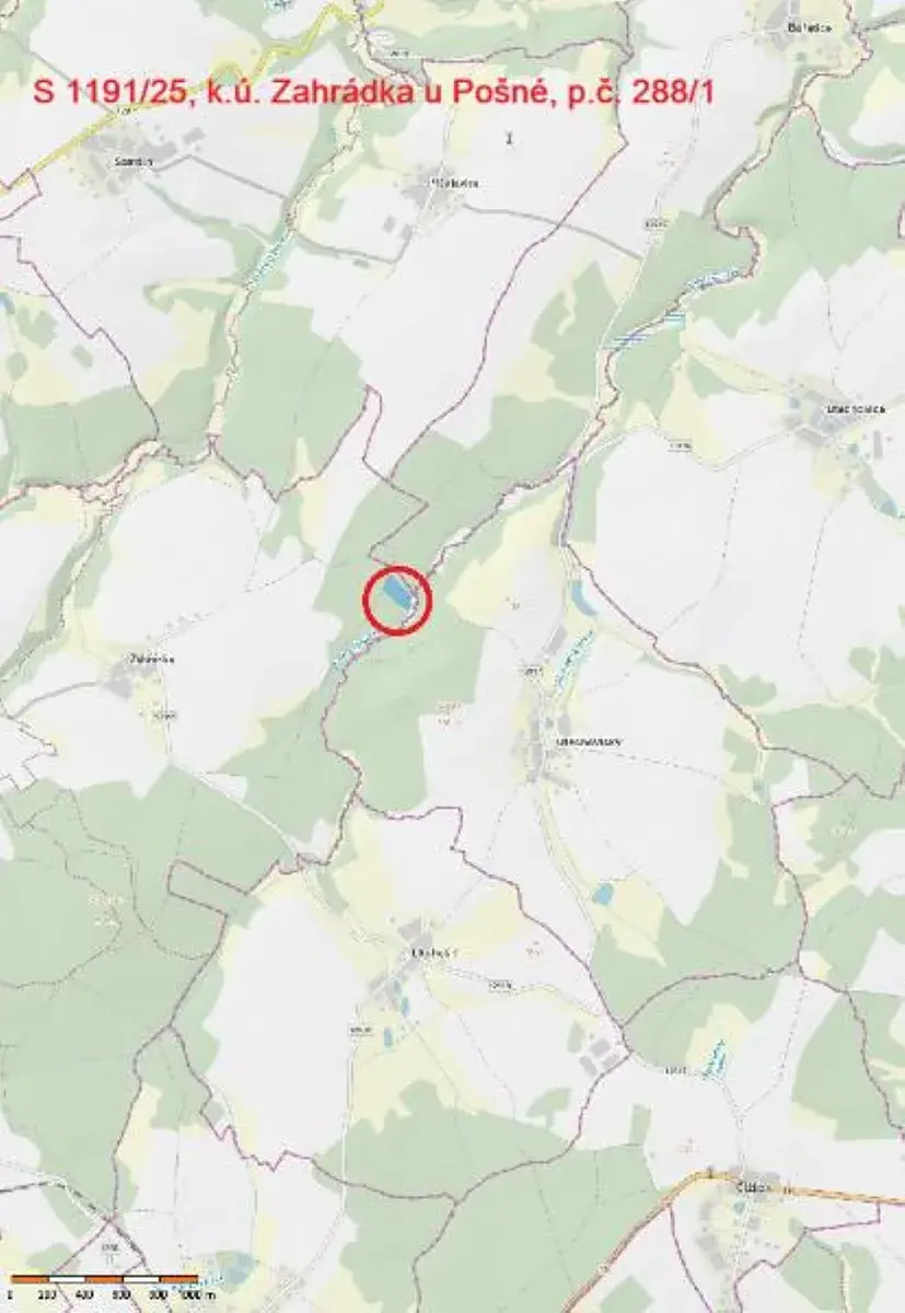 Jedná se o prodej lesního pozemku parc. č. 288/1 o výměře 12283 m2, nepravidelného tvaru, situovaného severně od obce Zahrádka mezi privátními lesy. Po provedených těžbách byla část plochy zalesněna. Část pozemku je zaplocená a osázená bukem, část je pak nově zasázená smrkem.