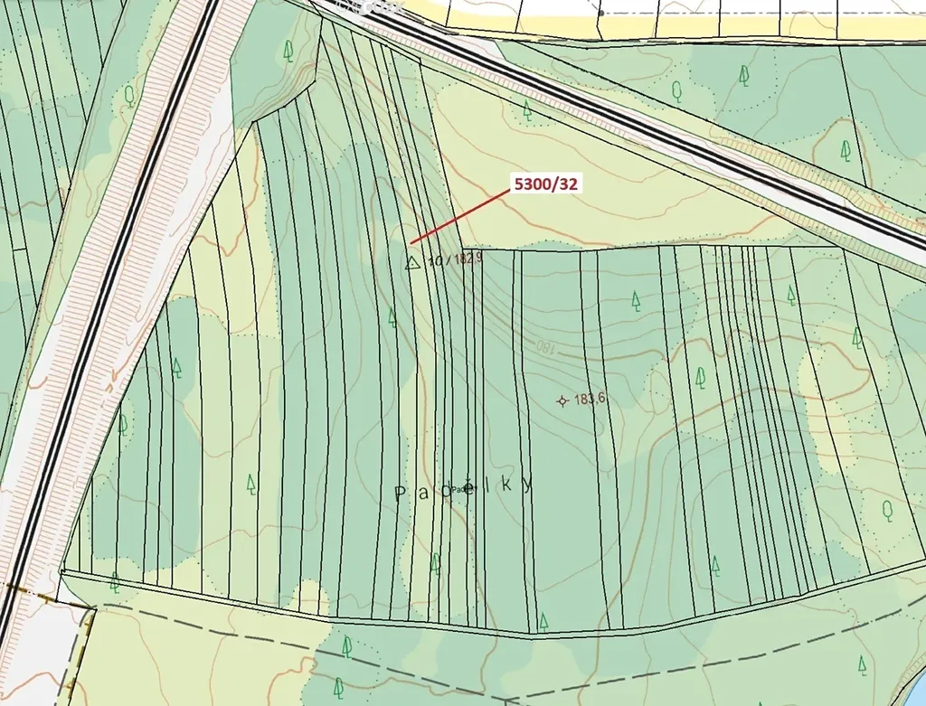 Lesní pozemek o výměře 4949 m2, parcelní číslo 5300/32, podíl 1/1, katastrální území Bzenec, obec Bzenec, obec s rozšířenou působností Kyjov, okres Hodonín, Jihomoravský kraj.