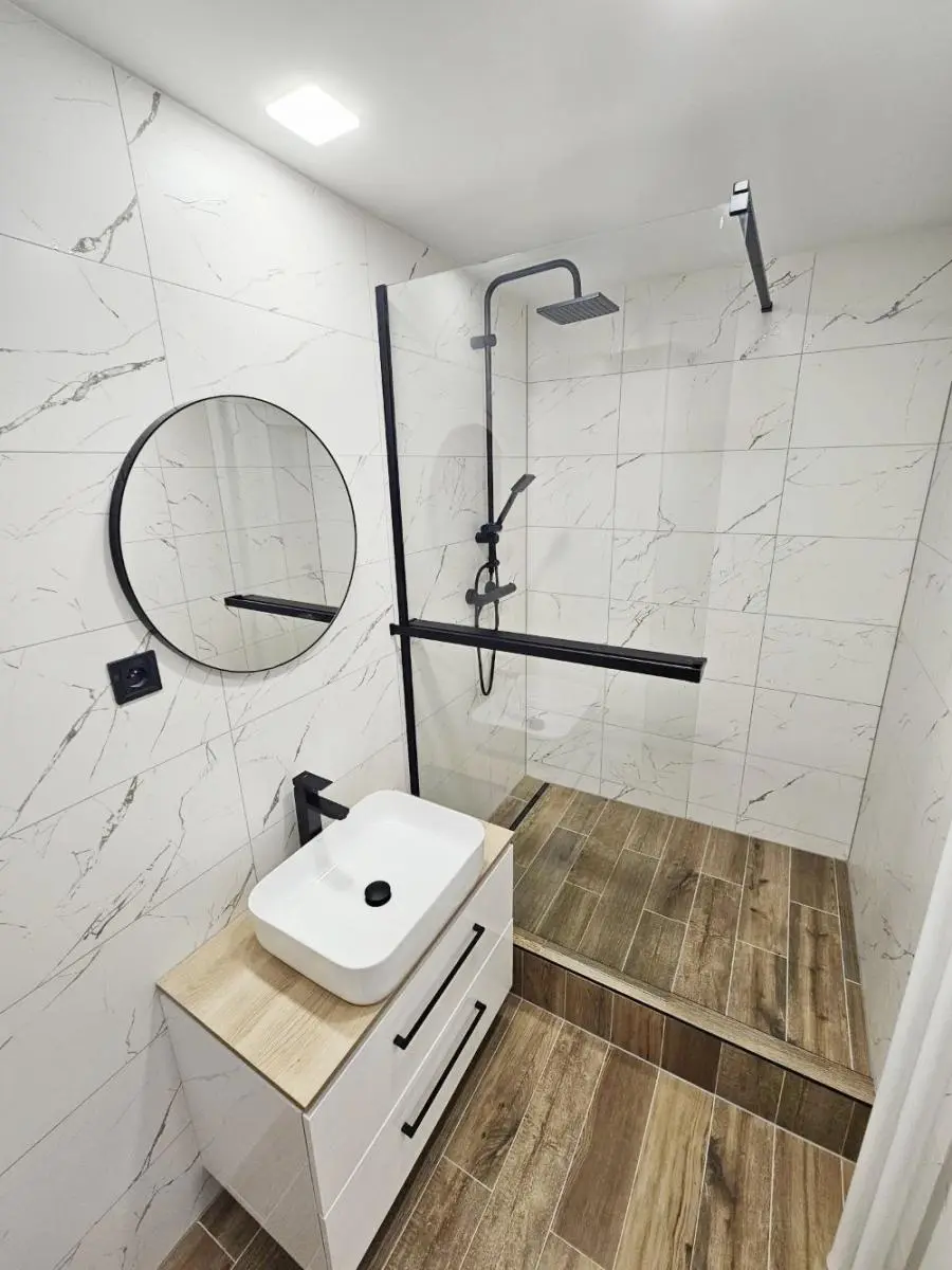 Byt prošel kompletní, nákladnou a velice zdařilou rekonstrukcí. V kuchyni je moderní kuchyňská linka s vestavnými spotřebiči a indukční deskou. V koupelně je prostorný sprchový kout, umyvadlová skříňka se zrcadlem a WC, přípojka na pračku připravena. Po celém bytě jsou položeny vinylové podlahy, nové dveře s obložkami a byla provedena kompletní výmalba. Vše je vyladěno do posledního detailu a připraveno k okamžitému nastěhování bez dalších nákladných investic.