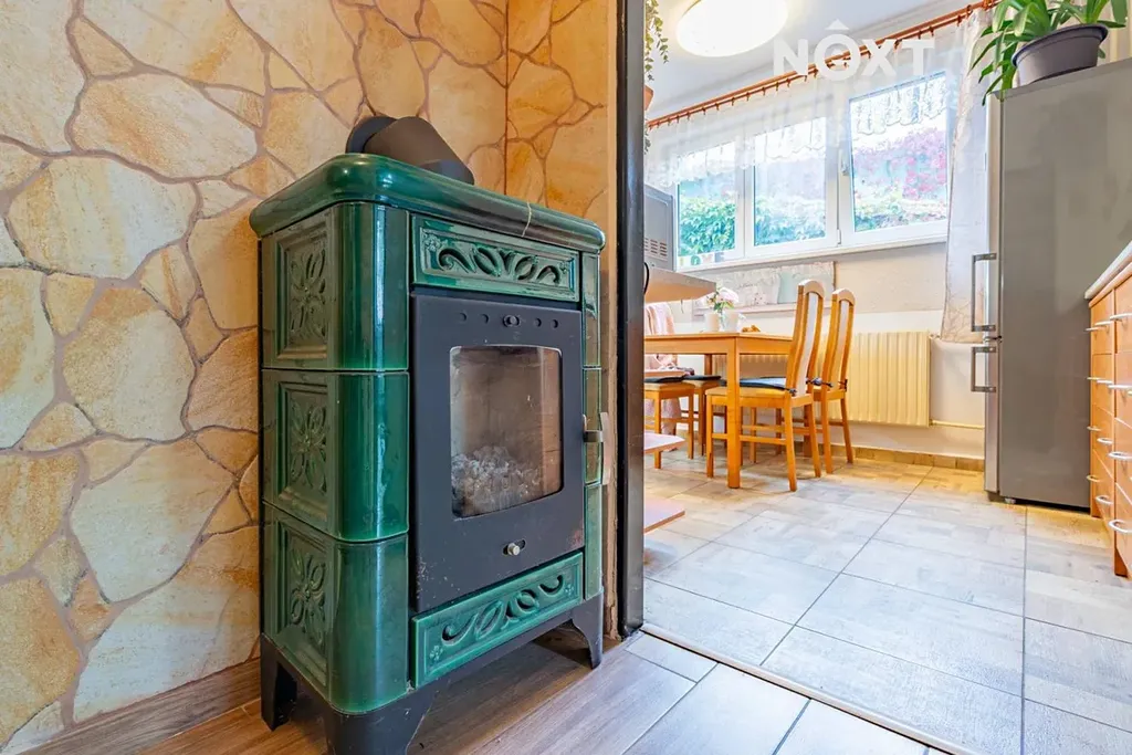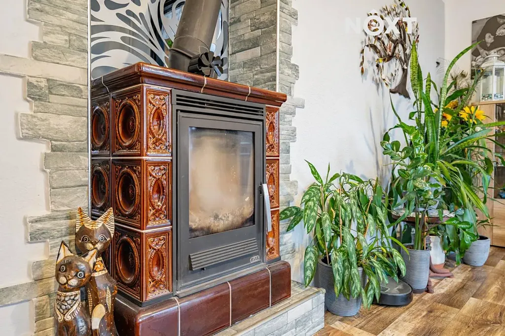 Vytápění zajišťuje plynový kotel, doplněný o krbová kamna v prvním i druhém podlaží, která dodávají interiéru příjemnou atmosféru a zajišťují úsporný provoz.