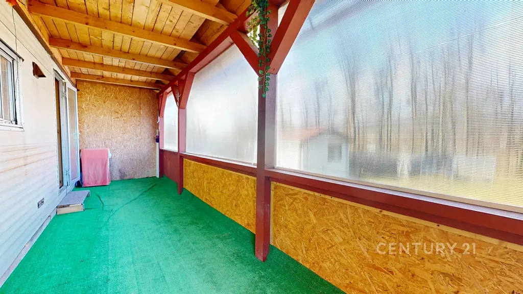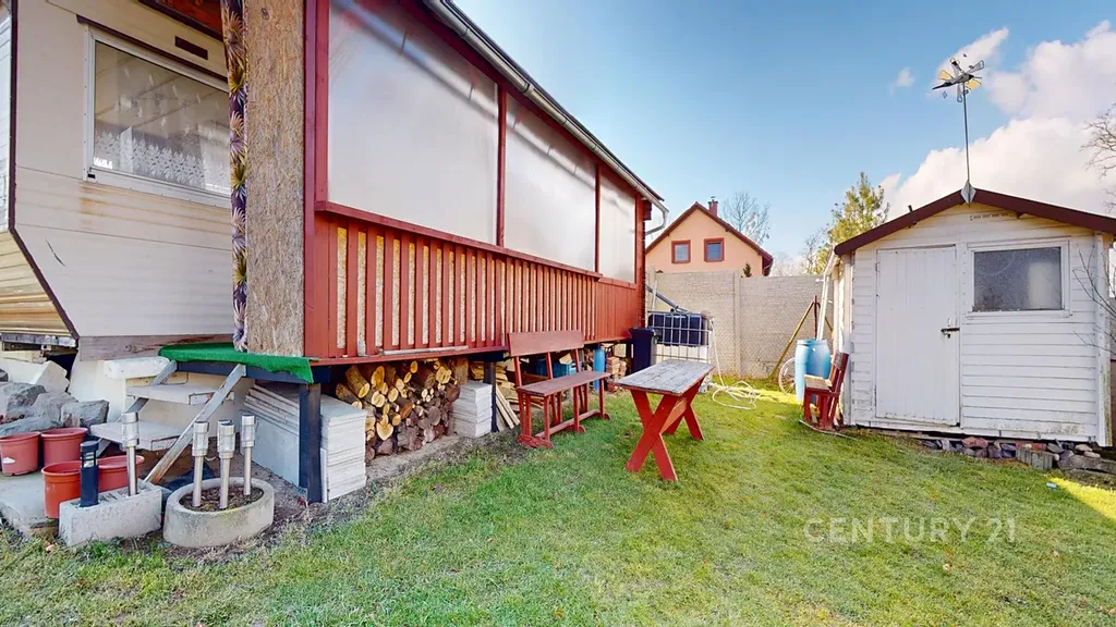 Celková velikost pozemku je 948 m². To je dost místa na bazén, ovocný sad, dětské hřiště i pořádný kus trávníku. Na pozemku stojí mobilheim 3+kk o zastavěné ploše 47 m², který je připojen na elektřinu a vodovod. Nejde o žádnou kůlnu na nářadí, ale o zázemí, které můžete využívat celoročně.