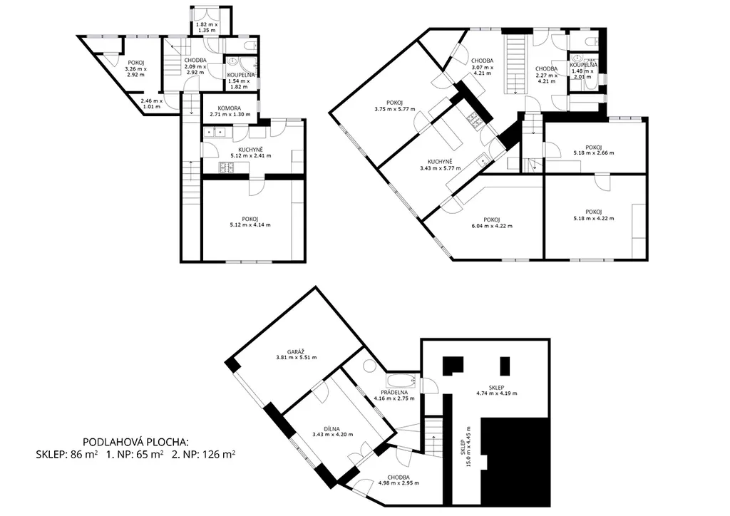 Přízemí: garáž, dílna, 2 sklepy