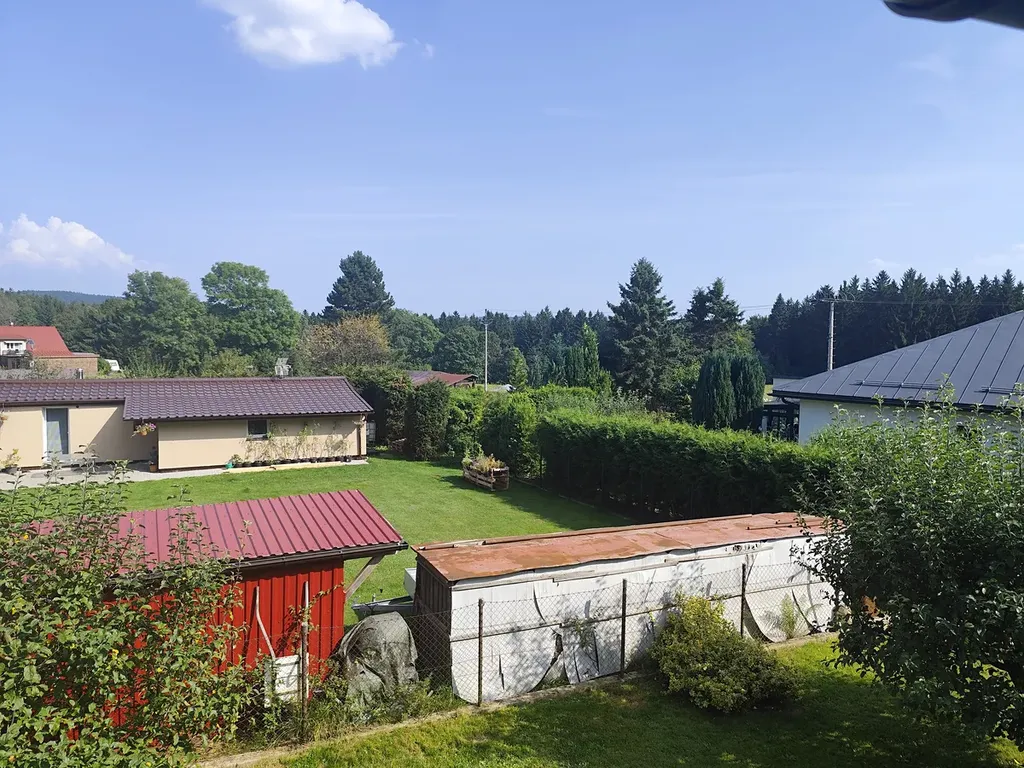 Zahrada kolem domu je plně oplocena, rovinatá s ovocnými stromy, dřevěným přístavkem na studnu, 2xpřístřešek na dřevo a pergolou pro odpočinek. Je velmi slunná, s dostatkem prostoru pro venkovní aktivity.