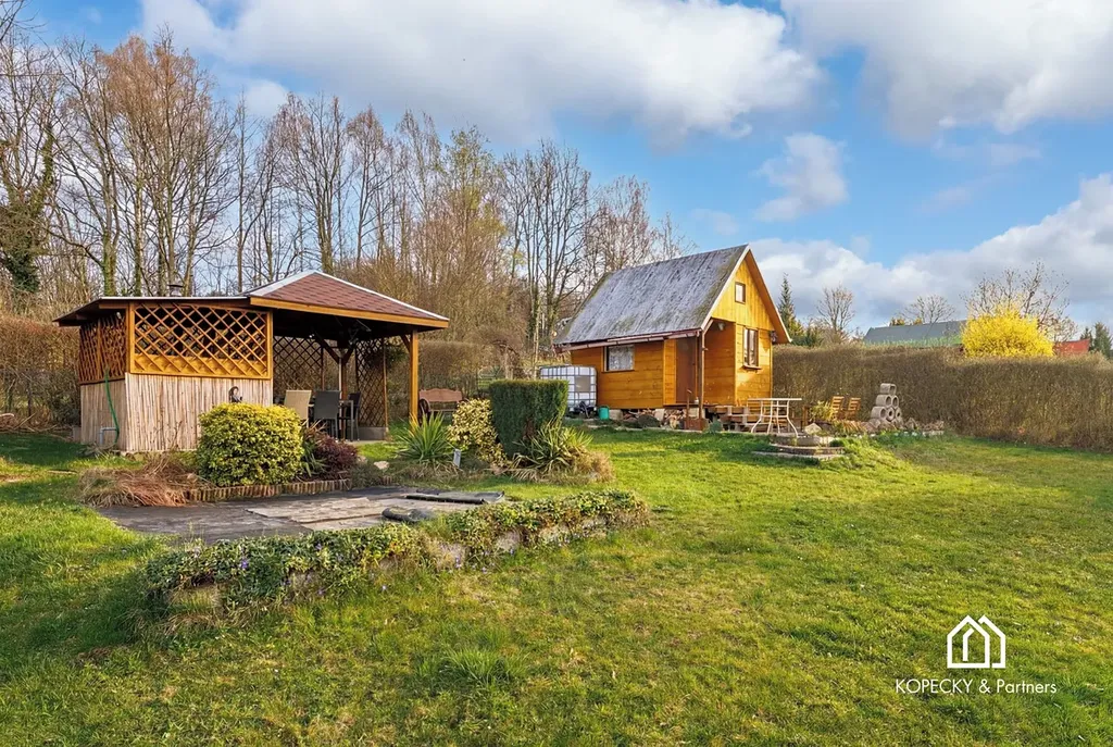 Příjemným doplňkem je také pergola umístěná vedle chaty, která přímo vybízí k posezení s rodinou či přáteli, letnímu grilování nebo klidnému odpočinku ve stínu. Samotná zahrada nabízí dostatek prostoru pro pěstování, relaxaci i další úpravy dle představ nového majitele.
