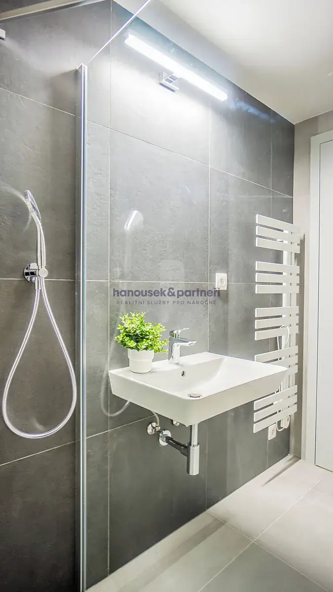 Kolaudace stavby byla dokončena na konci roku 2023. Vytápění a ohřev vody jsou zajištěny centrálně domovní kotelnou se dvěma plynovými kotly. Ve všech místnostech je podlahové topení, na kterém je položená odolná a praktická vinylová podlaha. Vodovod a kanalizace jsou obecní. Budova je v energetické třídě B a všechna okna mají nízkoenergetické trojsklo, takže z vyúčtování nemusíte mít obavy. Dveře a obložky jsou od kvalitního českého výrobce SAPELI. Obklady a dlažba pochází od Italského výrobce Marazzi.
