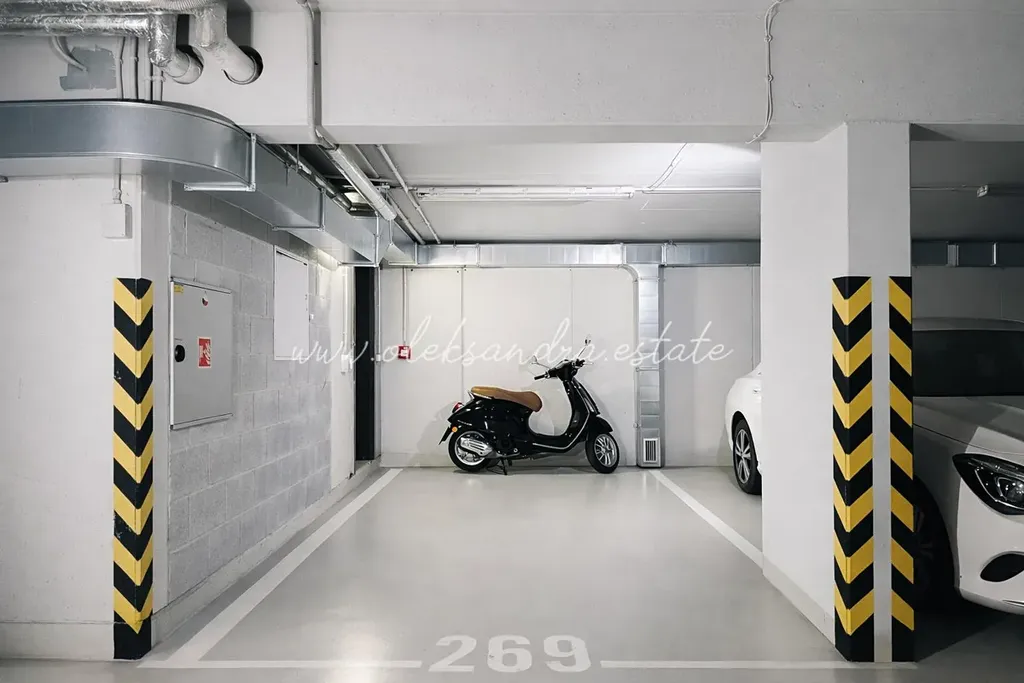 Byt je vybaven chytrou domácností s kompletním osvětlením Philips Hue, spotřebiči Bosch nejvyšší třídy, klimatizací s funkcí chlazení i vytápění, venkovními elektrickými roletami a vyhřívanou podlahou v koupelně. Každý detail zde má své místo a funkci.