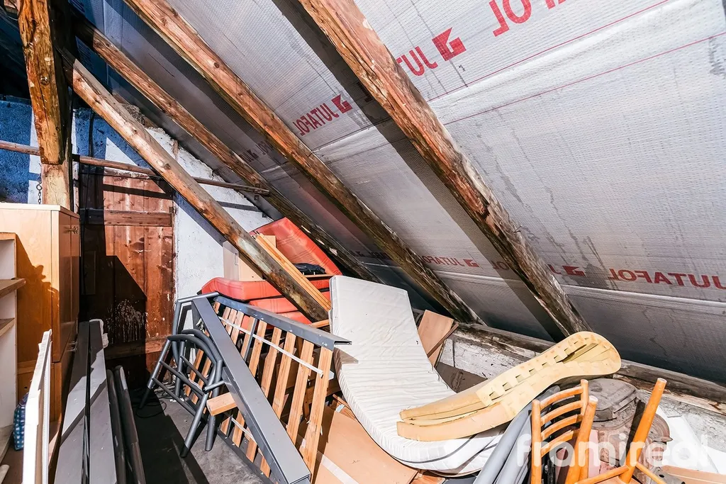 Velkou výhodou je možnost současné koupě bytu o podlahové ploše 50 m² nacházejícího se přímo pod půdním prostorem, který bude k dispozici od května po ukončení stávajícího nájmu. Spojením obou částí lze vytvořit atraktivní mezonetový byt s výhledem na Brno nebo realizovat více dispozičních variant dle investičního záměru. Koupě bytu zároveň výrazně usnadňuje řešení vedení inženýrských sítí pro budoucí úpravy.
