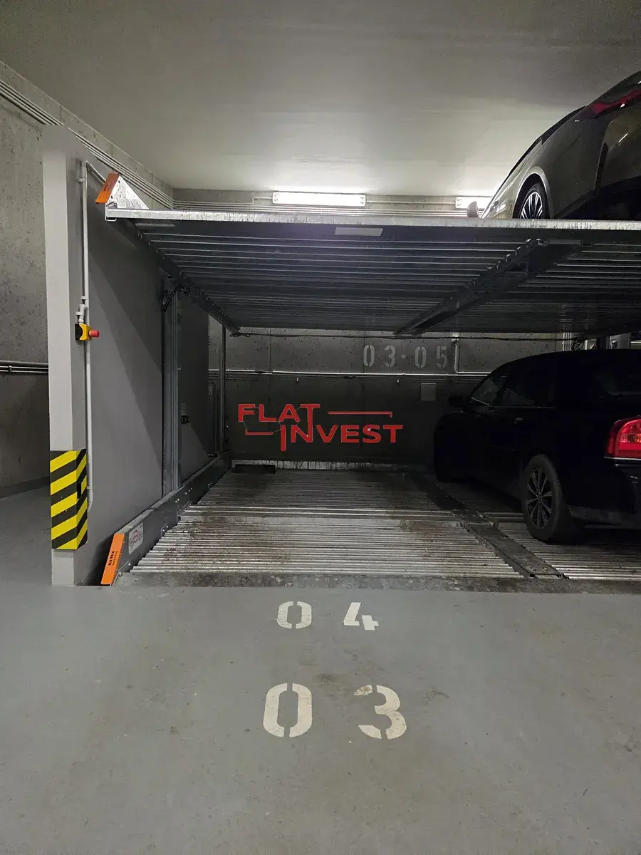 Garážové stání: K bytu náleží spodní parkovací místo v zakladači přímo v domě.