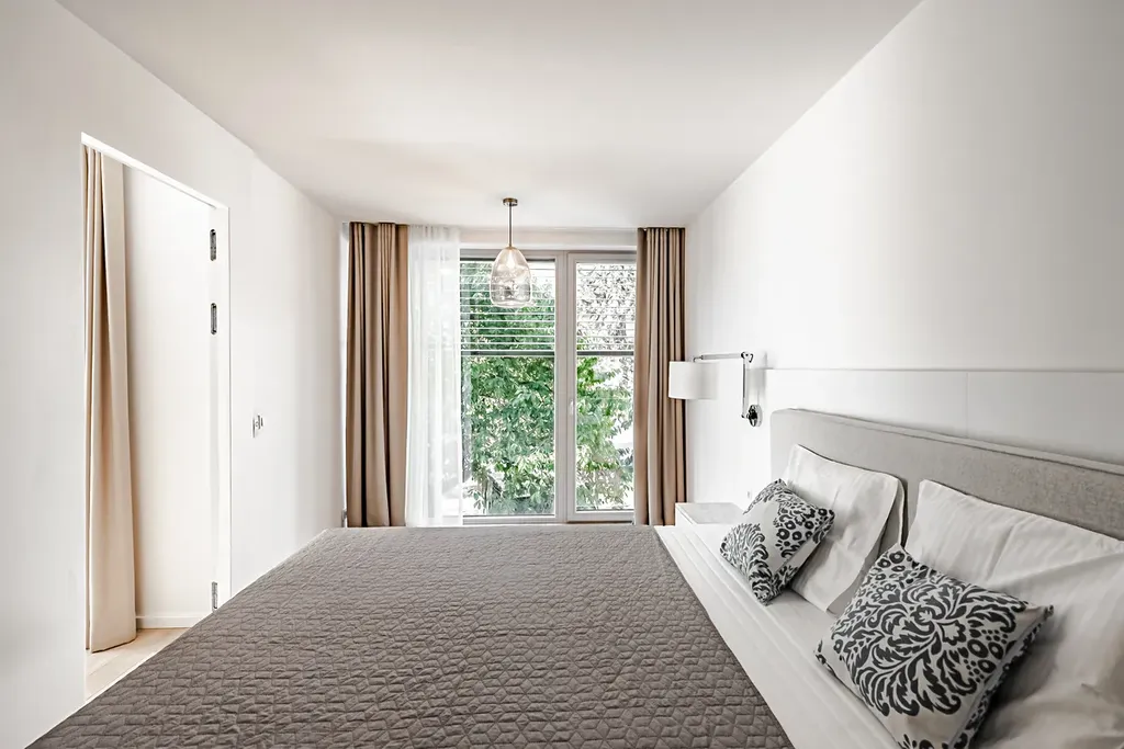 Standard bytu klade důraz na kvalitu a komfort: podlahové vytápění v celém bytě, dřevěná okna typu floor-to-ceiling s trojskly, velkoformátová dlažba, sanitární vybavení renomovaných značek. V ložnici je instalováno exteriérové stínění pomocí venkovních žaluzií, v obývacím prostoru pak částečně screenová roleta.