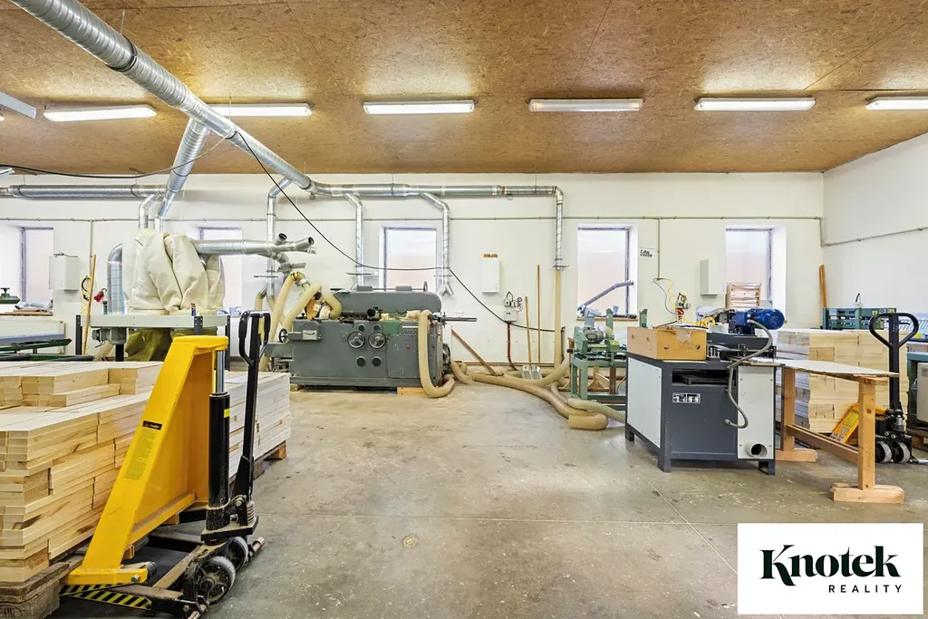 - SAMOSTATNÁ HALA s užitnou plochou 178,32 m2. Hala má samostatný vstup a také posuvná vrata s možností vjezdu nákladního auta (sv. v. 3,8 m). V současnosti je hala využívaná jako truhlářská dílna.