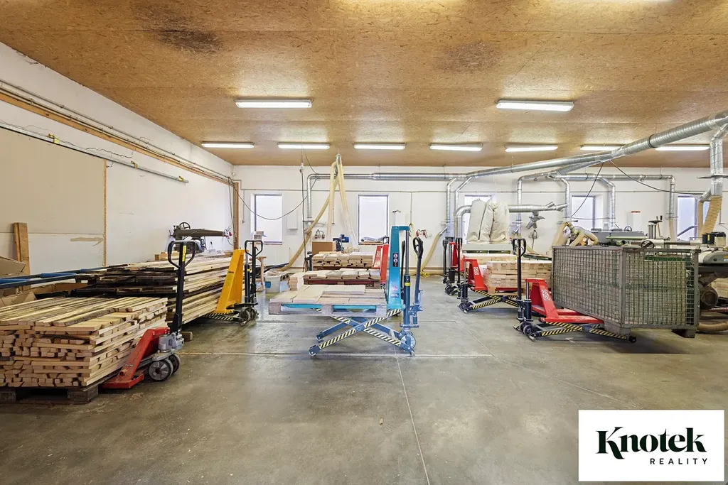 - SAMOSTATNÁ HALA s užitnou plochou 178,32 m2. Hala má samostatný vstup a také posuvná vrata s možností vjezdu nákladního auta (sv. v. 3,8 m). V současnosti je hala využívaná jako truhlářská dílna.