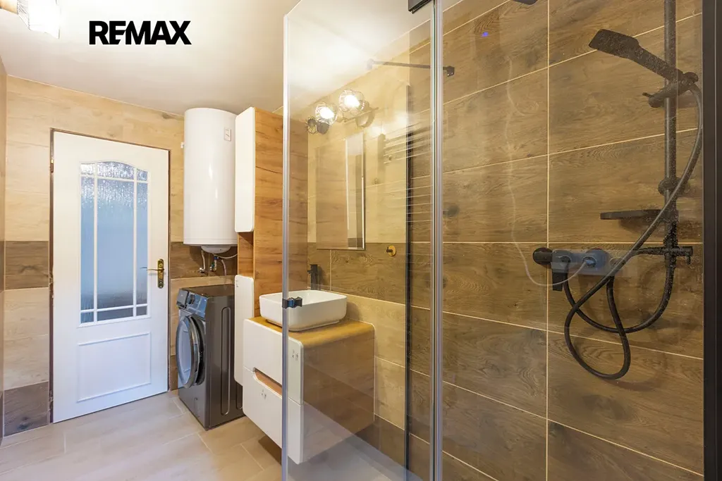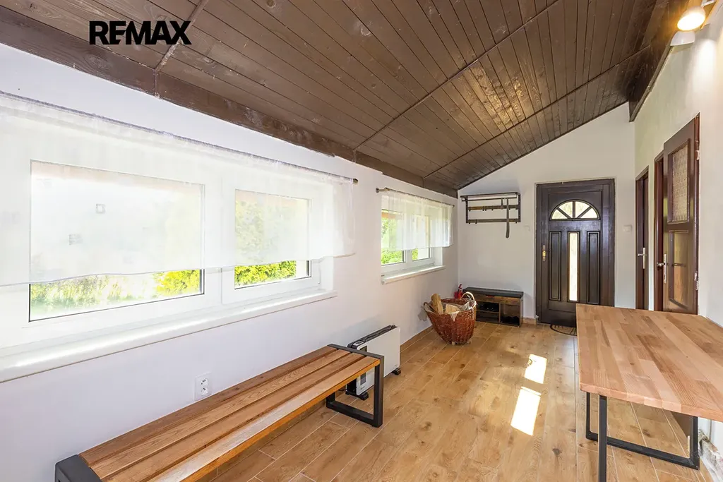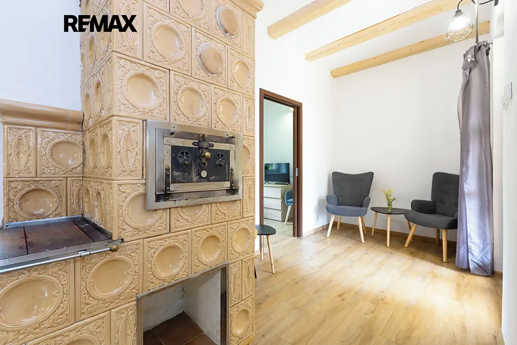 Prostorové uspořádání domu se skládá ze dvou obytných podlaží, přičemž 1.NP , o dispozici 2 +1, ze zádveří, chodby, velice prostorné kuchyně s krbovými kamny a novou kuchyňskou linkou, prostornou ložnicí, moderní koupelny se sprchovým koutem a toaletou, samostatného pokoje, technické místnosti/dílny a přístupem do historického sklepa. Ve 2.NP naleznete prostorný pokoj s terasou, chodbou a vstupem do dalších, potenciálně využitelných půdních prostor. Dům je obklopen nově zbudovanou, velkoryse řešenou terasou, která poskytuje příjemné posezení a dostatečný prostor při společenských/rodinných akcích.