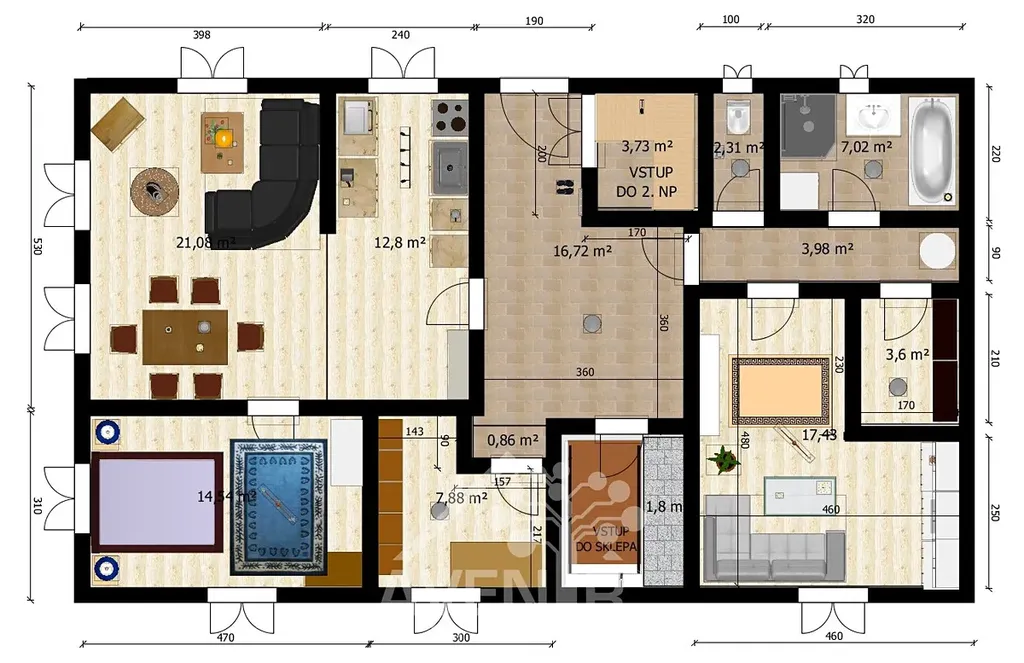 Půdorysy a výměry jsou orientační. Hypotéku zajistím.