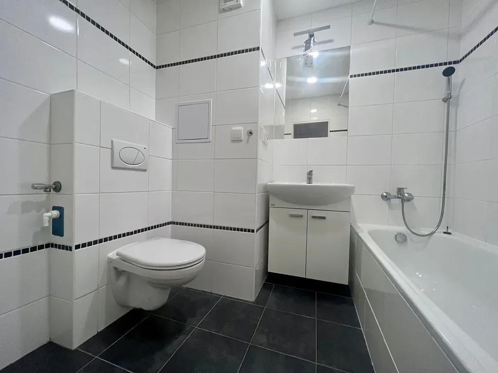 Ze vstupní chodby je přístup do koupelny se sprchou, toaletou a pračkou. V chodbě je dispozici vysoká šatní skříň a je zde dost místa na botník či komodu. Kuchyňská linka je vybavena vestavnými spotřebiči, tj. Elektrická trouba a varná deska. Lednice je samostatná. Prostorný obývací pokoj se nabízí bez dalšího vybavení a lze tedy použít nábytek vlastní. Byt je připraven ihned k nastěhování. Zálohy na služby se vypočítají podle počtu nájemníků. Elektřinu převedeme na Vás. Internet či TV si zařizuje nájemník dle vlastních potřeb.