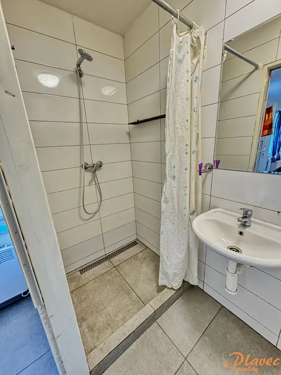 Dispozice: předsíň, pokoj s kuchyňským koutem, koupelna se sprchovým koutem a toaletou.