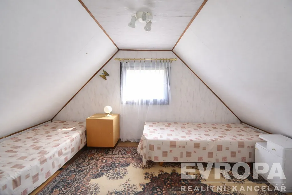 Nabízíme k prodeji rekreační chatu dispozice 4+kk, s užitnou plochou cca 55 m², situovanou v klidné a vyhledávané lokalitě Záhrabská, v obci Svatý Jan pod Skalou. Původní chata byla postavena přibližně v padesátých letech, v běžném provedení smíšená konstrukce (původní podezdívka a navazující dřevěná část se sedlovou střechou). Dispozice zahrnuje, prostorné zádveří (verandu), obytnou část s kuchyňským koutem, kde jsou krbová kamna, koupelnu s el. bojlerem, wc a dvě ložnice v podkroví.