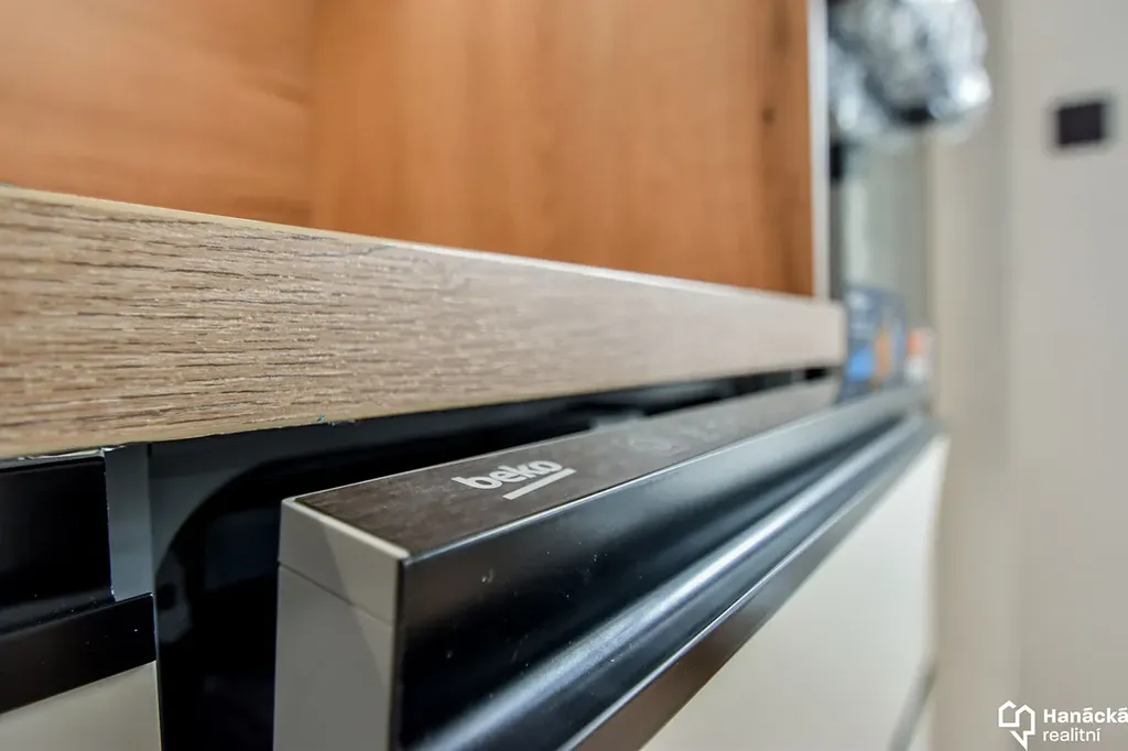 - Prostorná kuchyně se spotřebiči (elektrická trouba, indukce, myčka nádobí, mikrovlnná trouba, lednice s mrazákem).