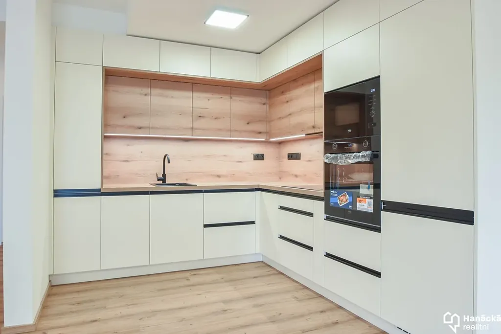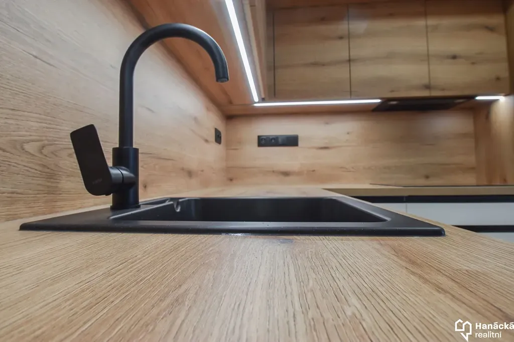- Prostorná kuchyně se spotřebiči (elektrická trouba, indukce, myčka nádobí, mikrovlnná trouba, lednice s mrazákem).