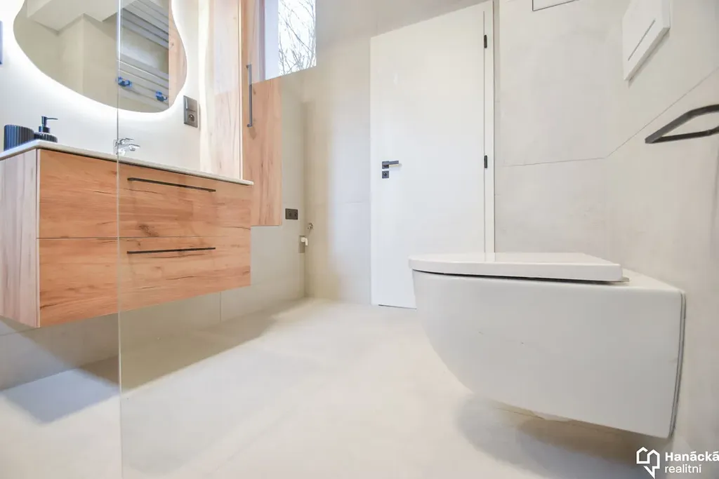 Byt disponuje podlahovým vytápěním, rekuperací s pasivním chlazením a venkovními elektrickými žaluziemi.