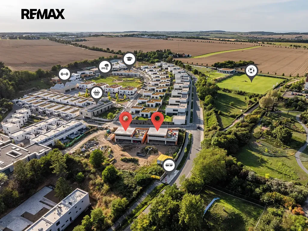 V místě je mateřská i základní škola, sportovní areál, fotbalové hřiště. Nedaleko OC Bořislavka i mezinárodní školy, restaurace, kavárny a obchody.