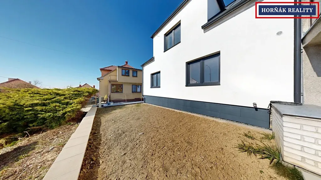 Dům, zahrada a celkové okolí domu tvoří bydlení klasického městského střihu ve městě s veškerou občanskou vybaveností, dostupnou pěší chůzí, s výbornou dopravní dojezdností do Brna jak autem, vlakem či autobusem v rámci IDS.