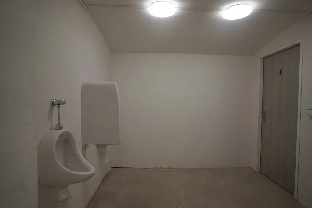 Do hlavní budovy o užitkové ploše 800m2 jsou 2 vstupy, bezbariérový vstup do 1NP a podzemního patra elektrickými garážovými vraty a další bezbariérový vstup je do 2NP železnými vraty zvenku z ulice, odsud se dostanete do podkroví, všechny patra jsou propojeny nákladním výtahem, který není v tuto chvíli v provozu.