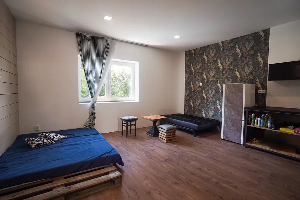 V areálu je dům s 2 bytovými jednotkami (3+kk a 2+kk) k němu je přilehlá zastřešená terasa o vel. 274m2 a v přízemí je sociální zázemí pro zaměstnance.