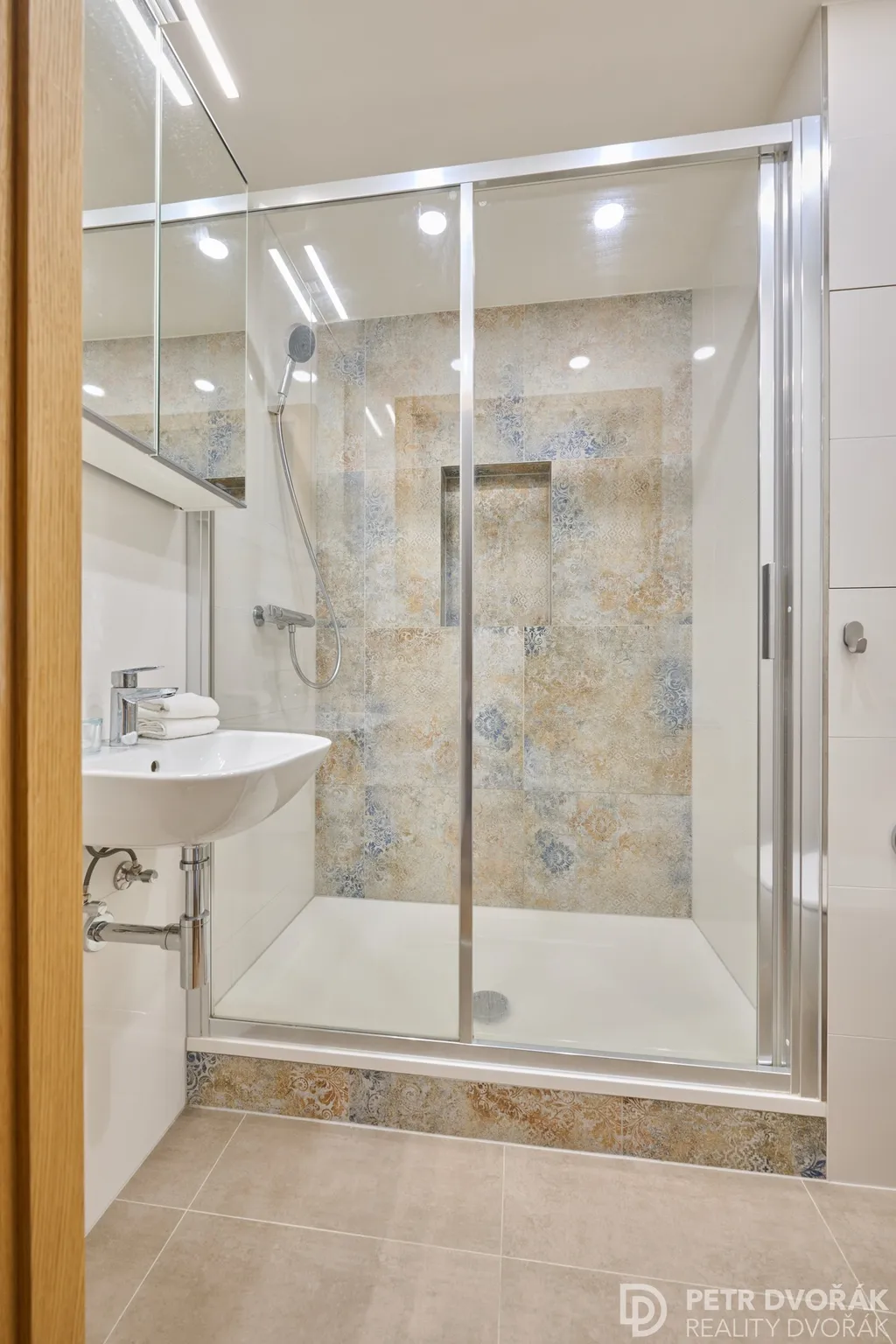Byt prošel v roce 2024 kompletní rekonstrukcí odbornou firmou — nové rozvody elektřiny a vody, radiátory, podlahy včetně podkladů, kuchyňská linka i spotřebiče. Trojskla jsou vybavena elektricky ovládanými roletami na dálkové ovládání. Akusticky upravené stěny a stropy zajišťují skutečný klid v každé části bytu. Interiér dokreslují dveře z dubové dýhy sladěné s podlahou.