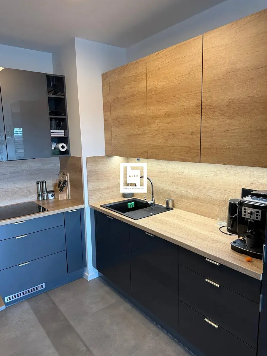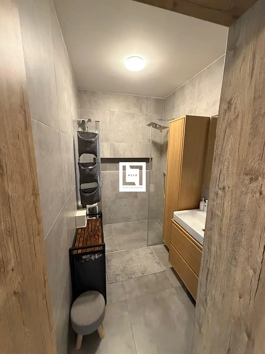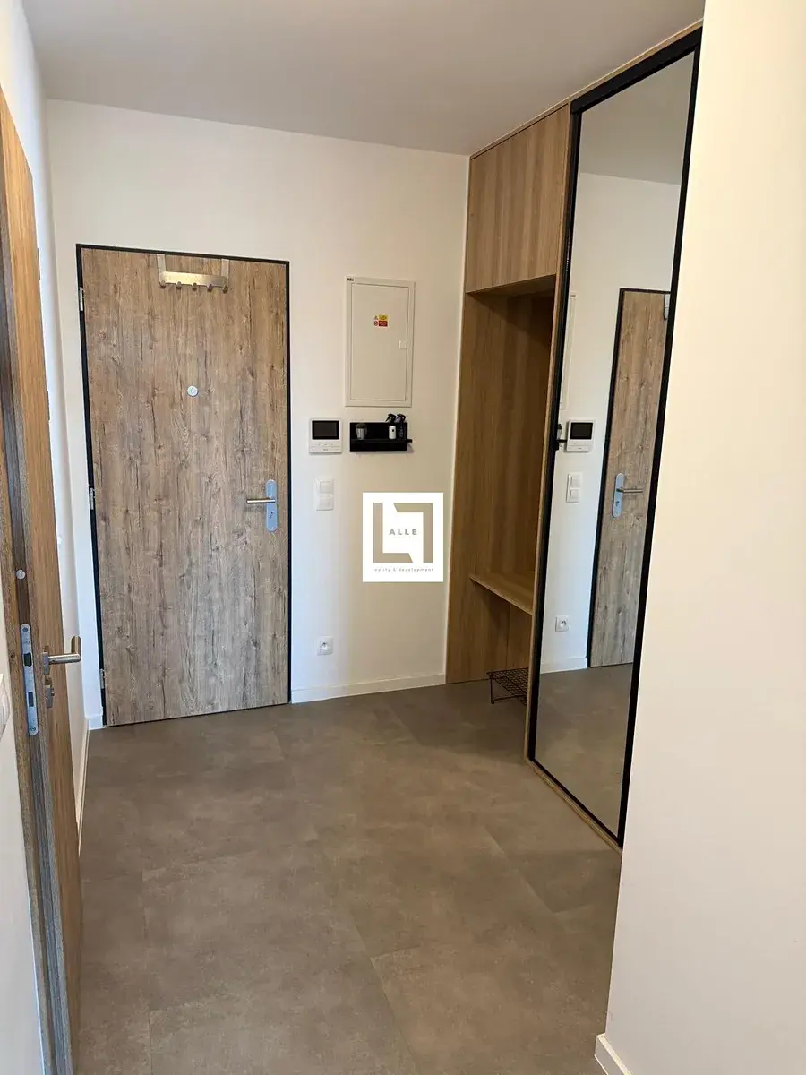 V zádveří je umístěna vestavená odkládací stěna a zrcadlová skříň. Kuchyňský kout je vybavený varnou deskou, digestoří, vestavěnou troubou, mikrovlnnou troubou a myčkou a je součástí obývacího pokoje, ze kterého je vstup na lodžii. V koupelně oceníte skříňky s úložným prostorem a sprchový kout, toaleta je samostatně. Z chodby je vchod do ložnice a do dalšího samostatného pokoje. K vyššímu standardu bydlení přispívá i podlahové vytápění. Jedná se o moderní bydlení, byt působí vzdušně, ale zároveň útulně.