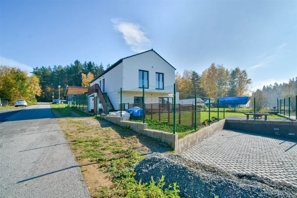 Z obou jednotek je zajištěn vstup na betonovou terasu a vlastní oplocenou zahradu se zahradním domkem, která nabízí ideální zázemí pro relaxaci. Jedná se o novostavbu z roku 2023 s energetickou náročností třídy B – velmi úsporná. Interiér i technologie odpovídají vysokému standardu: vytápění je napojeno na chytrou domácnost LOXONE pro efektivní správu na dálku a přístup do apartmánů zajišťují chytré zámky Nuki. Parkování se nachází přímo před domem.