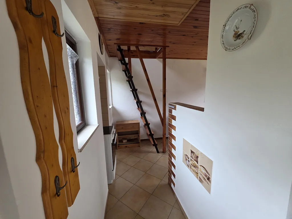 Chata je kompletně podsklepená – sklepní prostory jsou prakticky rozděleny na letní kuchyňku a samostatný skladovací prostor. V 1. patře se nachází hlavní obytná část s obývacím pokojem a kuchyní. Podkroví nabízí útulnou ložnici v jedné otevřené místnosti.