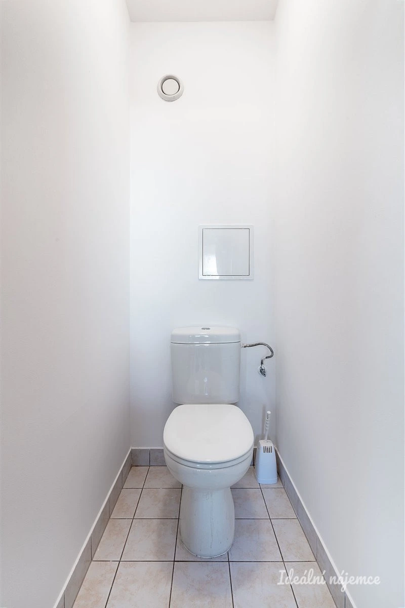 Koupelna disponuje sprchovým koutem, umyvadlem, zrcadlem, koupelnovými skříňkami a pračkou, WC je umístěno samostatně. Praktickou stránku bytu podtrhuje také dostatek úložných prostor – k dispozici je spíž, komora a vestavěná skříň v předsíni.