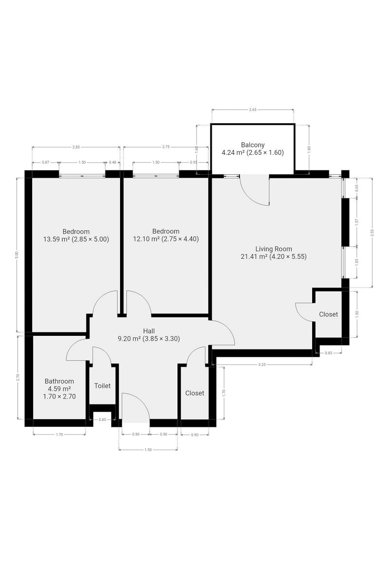 Oba pokoje jsou neprůchozí a nabízejí dostatek soukromí, což ocení pár i rodina. V jednom z pokojů se nachází vestavěná skříň, stolek, pohovka a TV, druhý pokoj je vybaven knihovnou a šatní skříní.
